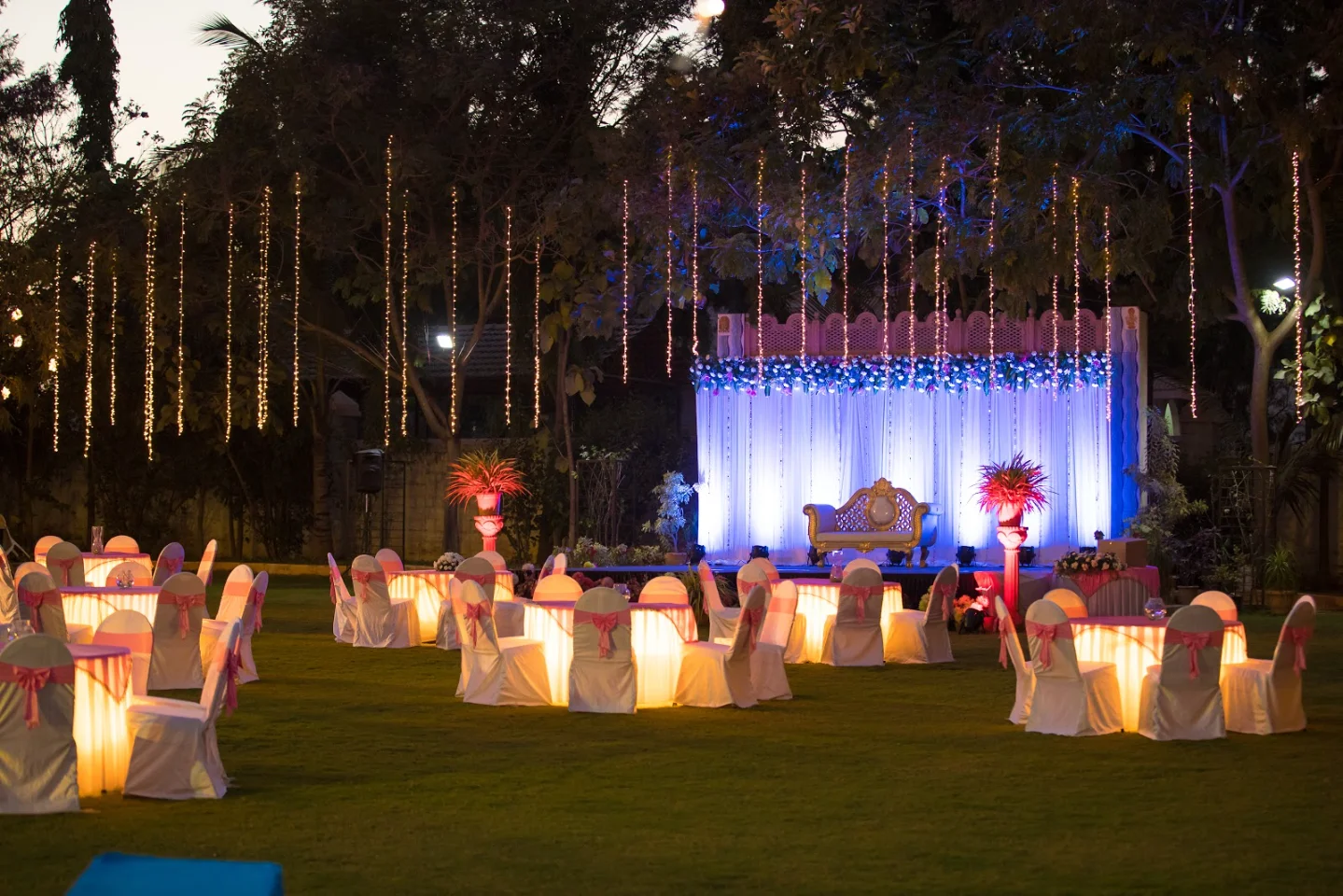 Ans. They provide mandap or stage decor, venue entrance, table decor, lighting, floral decor, and additional services for South Indian, Rajasthani, Royal, and Classical Indian-themed Weddings.