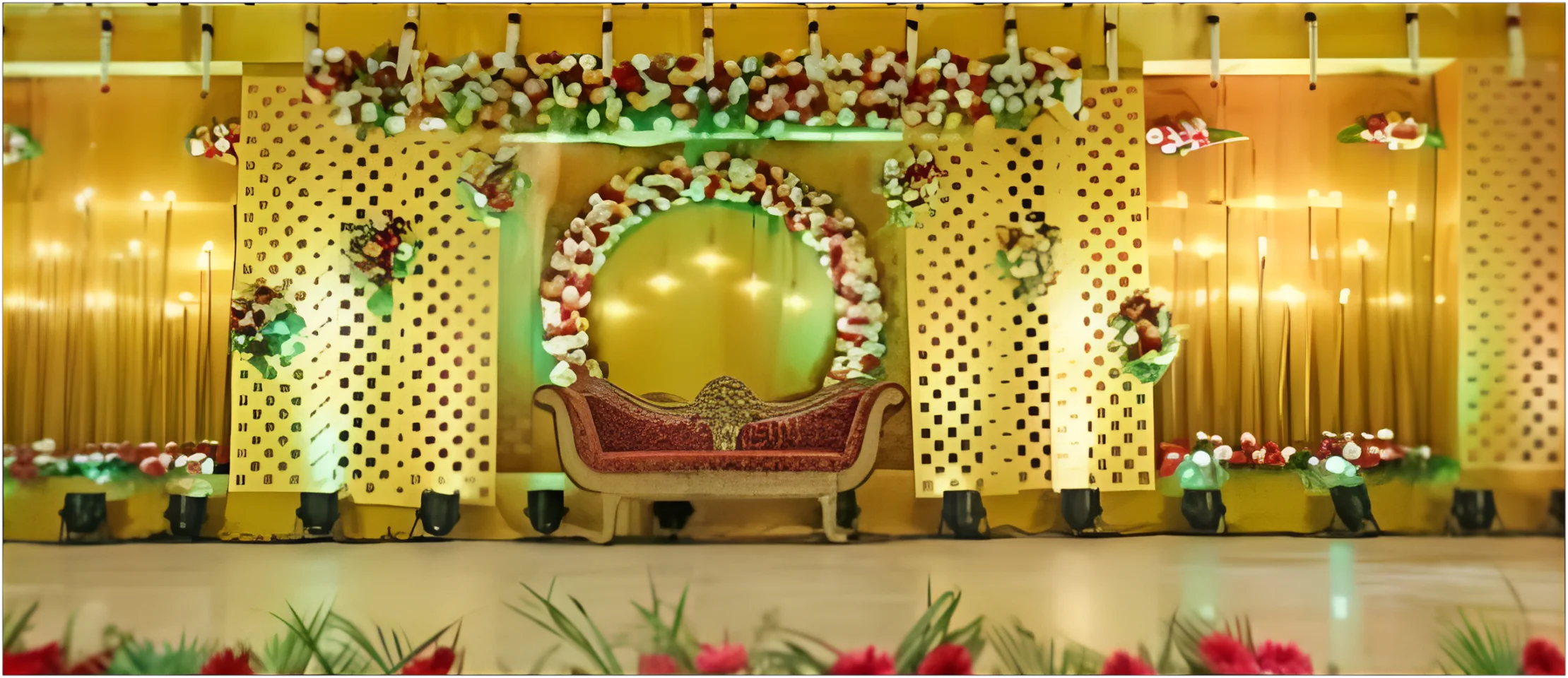Ans. Panthal Decoration Greenboys provides floral, panthal decor, and additional services for South Indian-themed Weddings.