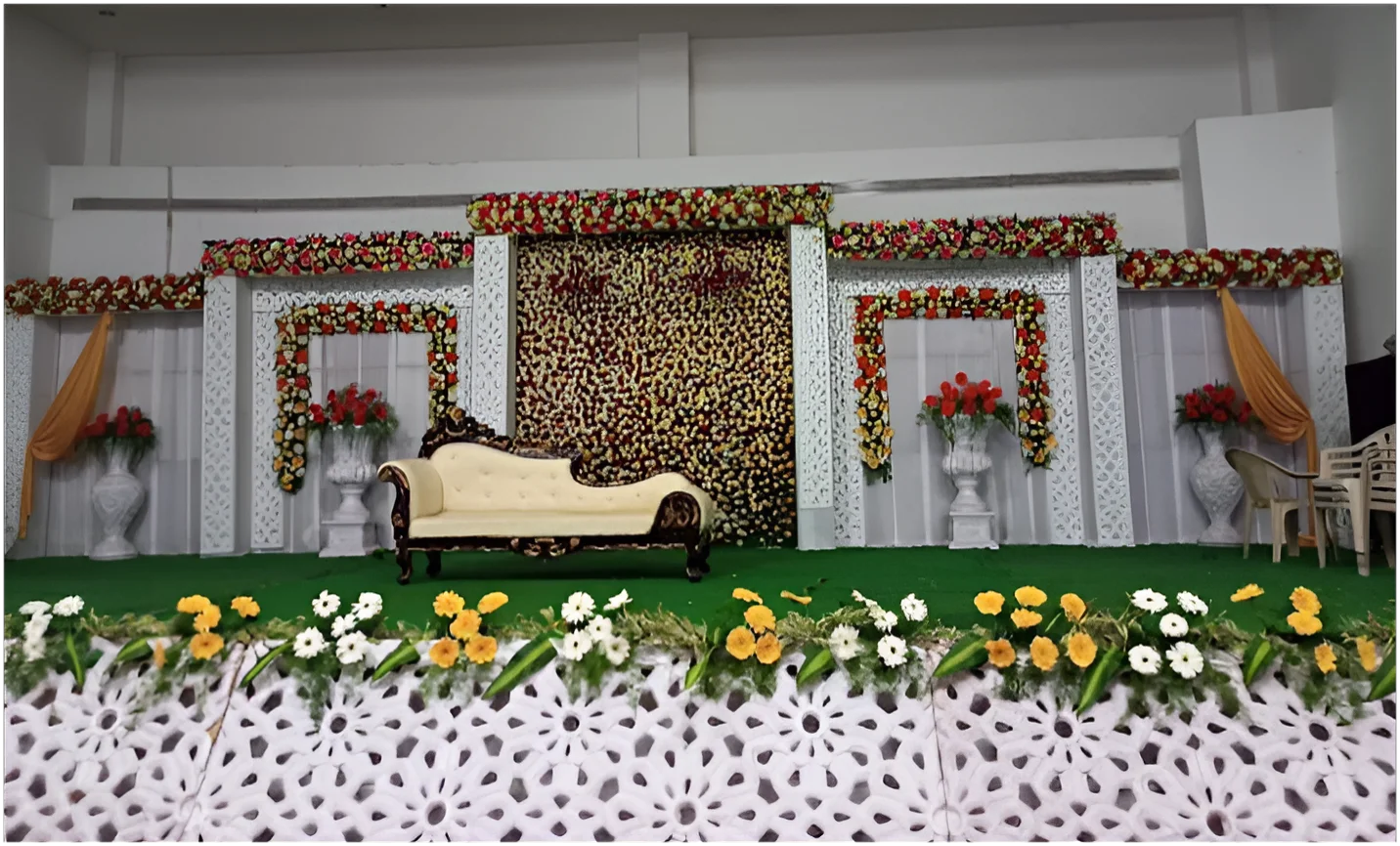 Ans. Sri Venkateshwara Flower Decoration provides modern decorations in floral, vintage, classy, and dreamy settings for weddings and other events.