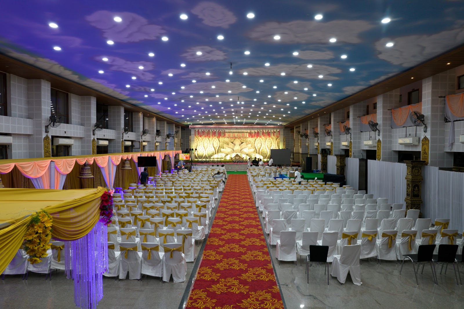 Outside decorators are commonly allowed with prior approval. Outside catering policies vary by venue, though many Kalyan Mandapams either allow empanelled caterers or offer in-house catering options.