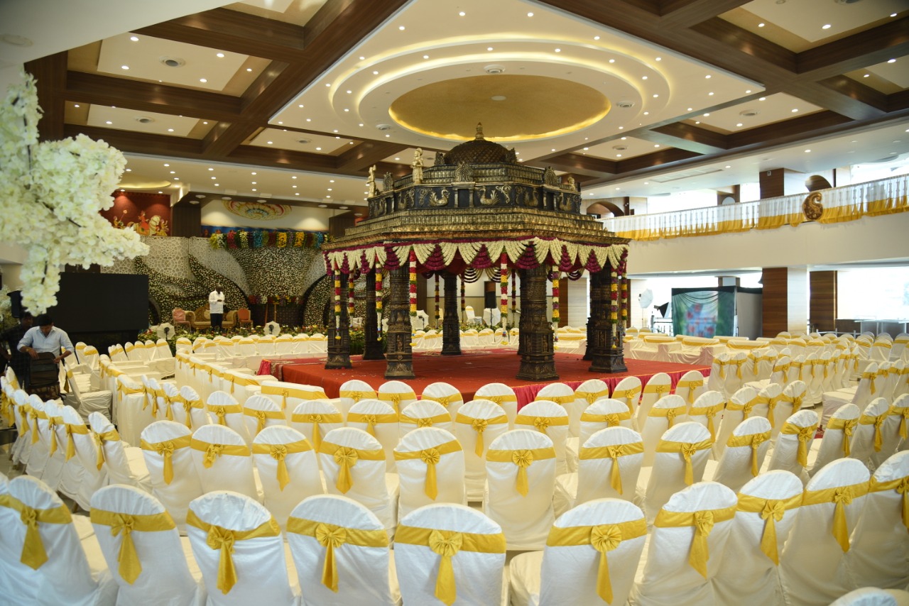 Some of the top-rated venues include Sri Sai Convention Hall, Bhavani Convention Center, and Sri Lakshmi Narasimha Kalyana Mantapa, known for their spacious settings and premium services.