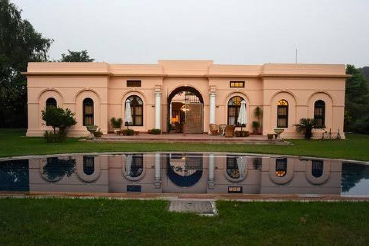 Tikli Bottom offers an escape to a Lutyens-style haveli where the quiet of the Aravalli hills replaces the city hum. This private guest house provides a sprawling lawn and a shaded courtyard, creating a rustic yet regal setting for an outdoor Gurgaon wedding. With twelve comfortable rooms for your guests and the ability to bring in outside decorators, your celebration feels like an intimate retreat. Enjoy organic in-house catering and the ease of available on-site parking.