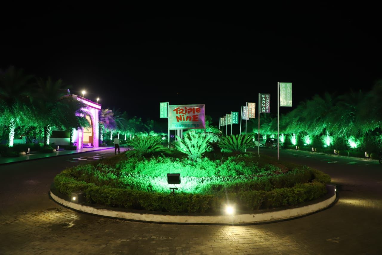 The Wedding Touch by Triple Nine stands as a majestic open-air sanctuary where the starlit Haryana sky becomes your only ceiling. This grand lawn provides a soulful setting for an exchange of vows, staying true to a celebration that feels airy and grounded. By permitting outside caterers and DJs, this premier banquet in Faridabad ensures your personal style remains the focus for a truly heartfelt ceremony under the stars.