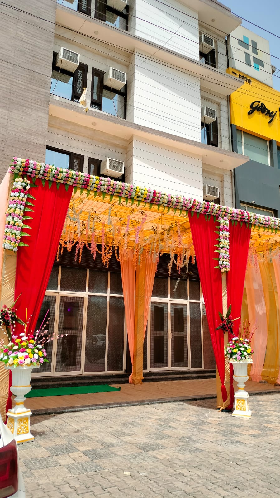 Hotel Livinn by Golden Plate is a wedding venue in Ghaziabad suitable for medium sized weddings and social functions. Located near Gaur City, the venue offers a spacious indoor banquet hall ideal for weddings, receptions, birthday parties, and corporate events. With in house catering, decor services, accommodation facilities, and parking, it provides a comfortable and well managed setting for hosting celebrations.