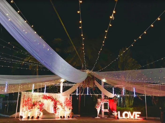 Almost all farmhouses in Goa offer large outdoor lawns or semi-open spaces. These venues are ideal for pheras, daytime functions, cocktail parties, and evening receptions.