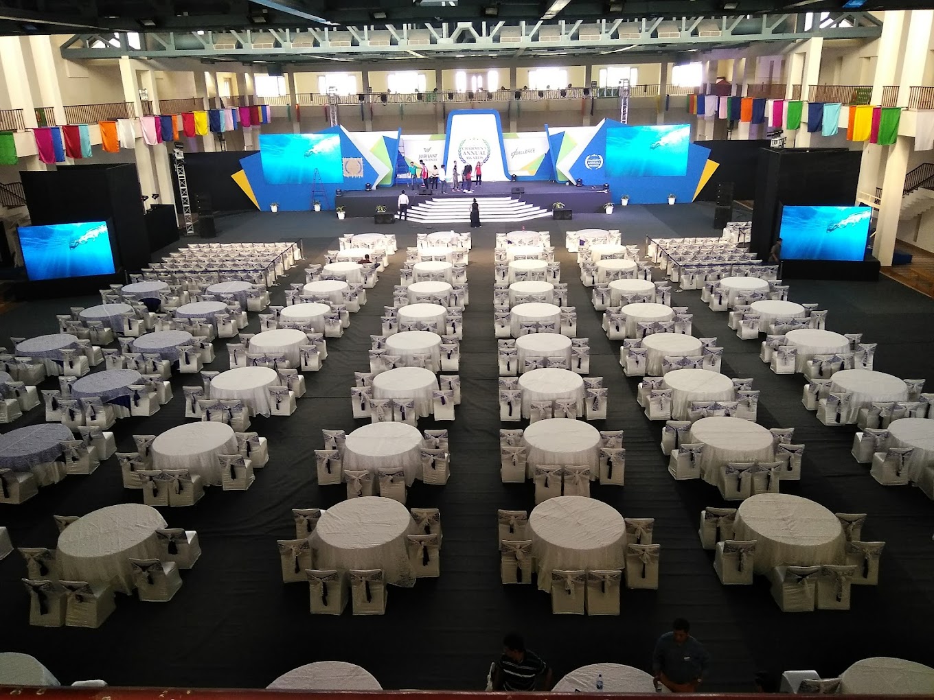 The venue can accommodate up to 1500 guests in seating and up to 2250 guests in floating arrangement when the hall and lawn are combined.