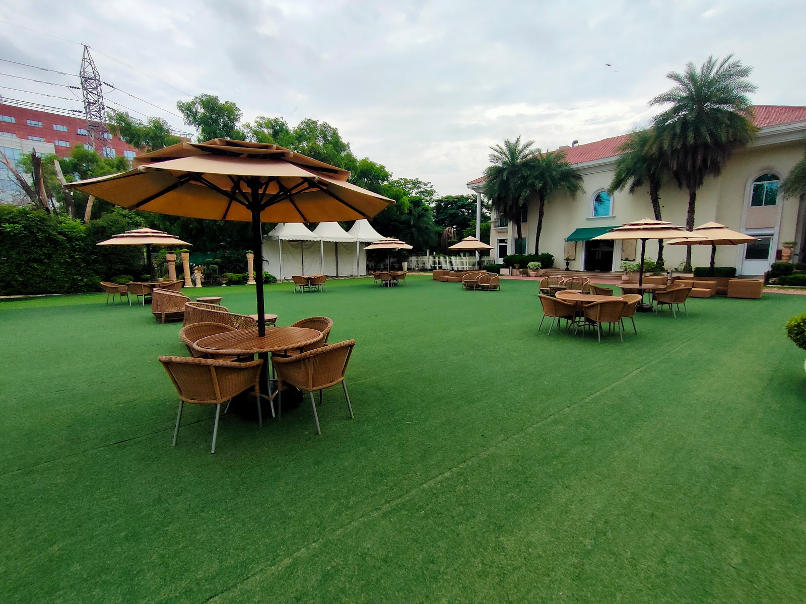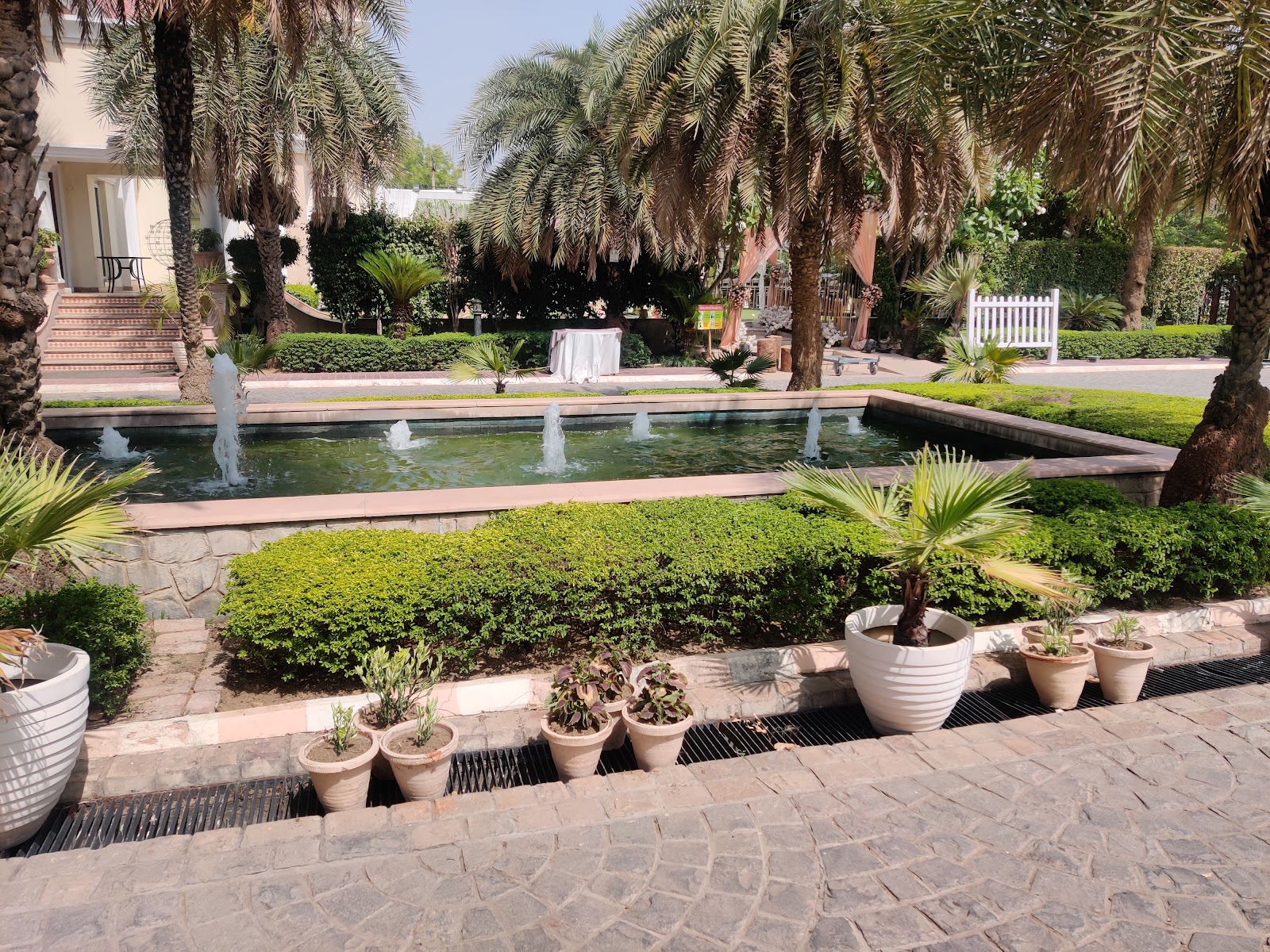 The 4-star wedding hotels in Gurugram that offer outdoor venues include The Oberoi, Grand Hyatt, Tivoli Heritage Palace, and Fortune Park Orange. Additional hotel names are listed above.