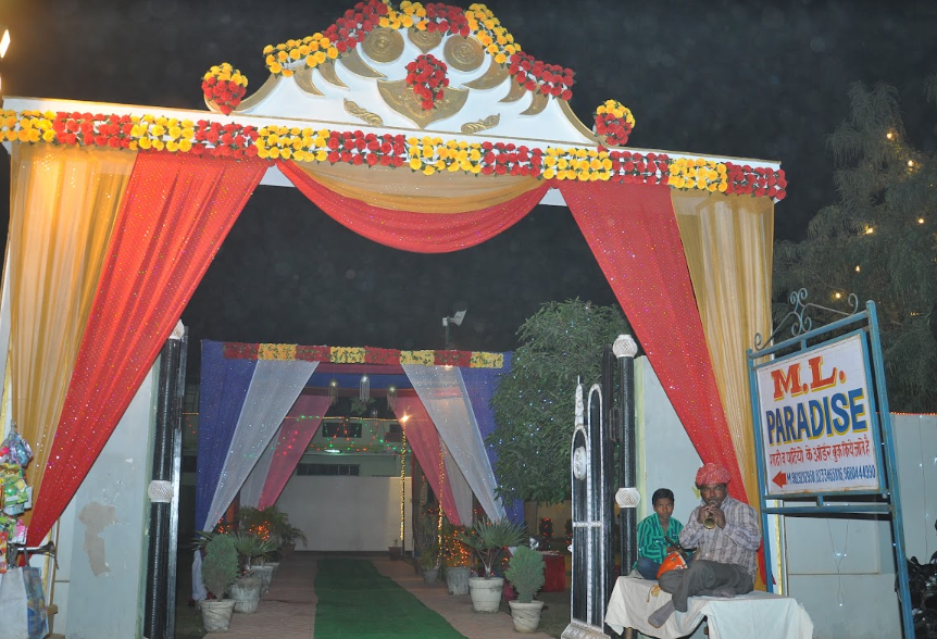 The beautiful and affordable ML Paradise in Jaipur is an ideal wedding destination. Only 19 minutes from Jaipur railway station, this venue is easily accessible for all your guests. It features a well-maintained lawn perfect for hosting various events, making it a great choice for your outdoor celebrations. ML Paradise can accommodate over 200 guests to celebrate your special day. The banquet hall offers ample parking with valet services for the safety and convenience of your vehicles.