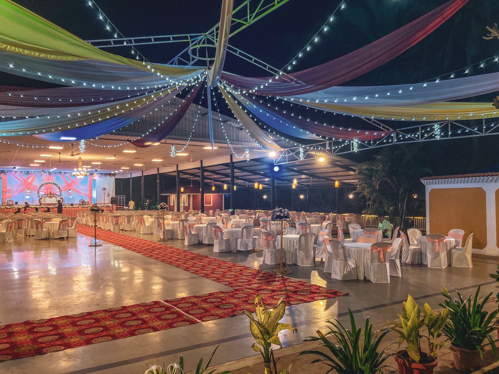 The wedding venue in Mapusa Hall offers a range of spaces that can be customized to suit your wedding events, including the main hall, outdoor areas, and lush green lawns. Whether you're planning an engagement ceremony, sangeet night, mehendi celebration, wedding ceremony, or reception, Rustic Rose Hall has got you covered. The venue's experienced event management team will work with you to ensure that every aspect of your wedding is tailored to your unique preferences and dreams.