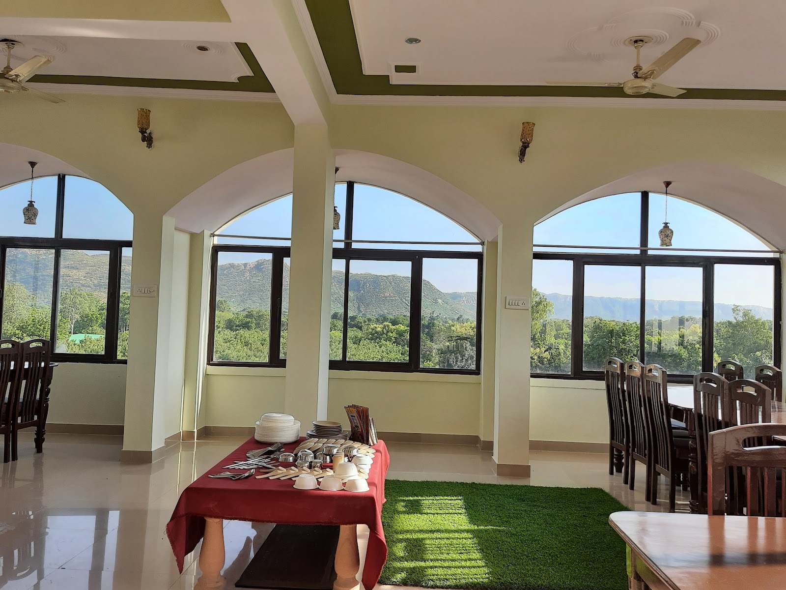 In-house catering is allowed at The Oberoi Vanyavilas Wildlife Resort, featuring a range of delicious vegetarian and non-vegetarian menus.