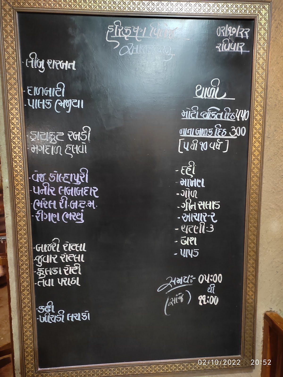 Vegetarian per plate: INR 350
