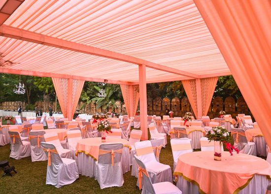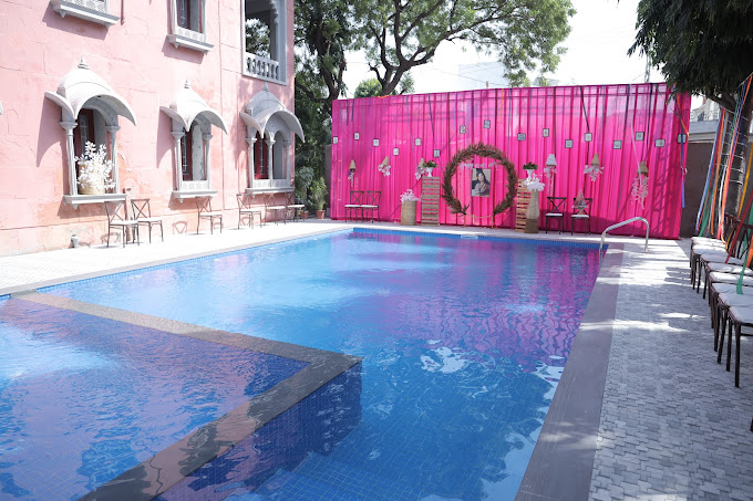 For weddings, The Jungalow in Udaipur is the ultimate resort, personifying a breathtaking fantasy. This charming location, which is next to the Satynarayan Temple and part of the Piers Helsen Estate, features grass and a stunning terrace party area. The terrace banquet hall in this wedding venue, which is exquisitely decorated with an intricately carved ceiling, vivid colors, and striking lights, can accommodate intimate gatherings. The lawn has well-kept greenery and is equally charming. Check online for The Jungalow wedding photos to get a visual idea of the beauty of a venue. The design and cooking are handled in-house taking off the stress off of you in this regard. The Jungalow wedding costs are reasonably priced and come with in-house perks serving as your one-stop shop for lavishly and stylishly celebrating your big occasions. It's the perfect place for private parties, pre-wedding celebrations, and close-knit social gatherings.